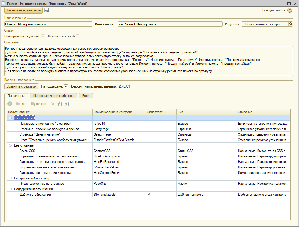 Перечень контролов, во многом определяющий возможности системы "Зета Веб", может видоизменяться в рамках версий продукта. Наборы контролов поставляются в рамках начальных данных, идущих с каждым релизом продукта, и загружаются в 1С с помощью обработки загрузки внутренних данных.